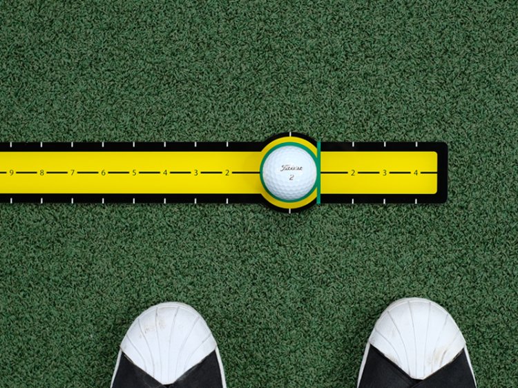 เมื่อ Body alignment ขนานกับ Target line แล้ว ขยับปลายเท้าทั้ง 2 ข้างให้อยู่ในตำแหน่งที่เท่ากัน และทิ้งน้ำหนักให้อยู่ที่กลางฝ่าเท้า โดยที่ตายังเห็นเส้นสีเขียวรอบลูกกอล์ฟอยู่